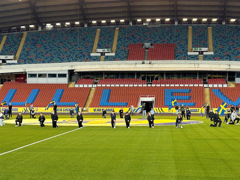 Som en del av klubbens sociala arbete har vi efter att fått förfrågan av Svenska Fotbollsförbundet att bistå med våra lag för att sköta den grannlaga uppgiften att hjälpa till med stämningshöjande aktiviteter innan avspark. Spelare från goikens P12, P11 och P09 kommer att ansvara för de svenska flaggor som ramar in lagens inmarsch och under nationalsångerna.